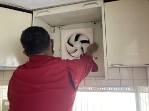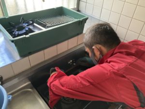 レンジフードクリーニング研修中のヒデちゃんさん