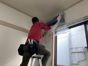 エアコンクリーニング研修中のヒデちゃんさん